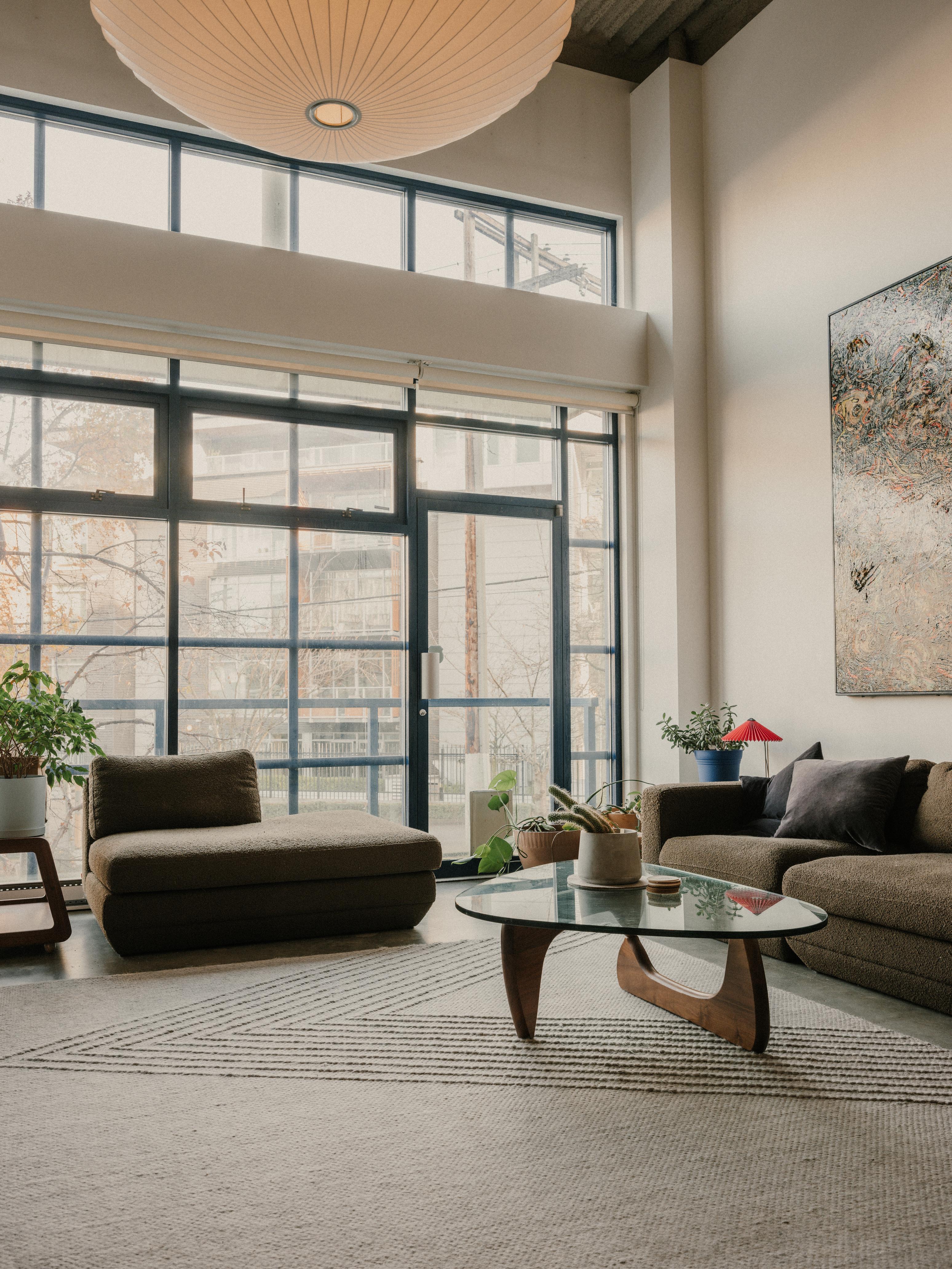This loft is a testament to meticulous design. From the moment you step through the lobby-grade entrance off East 4th Avenue, you’re greeted by soaring 16'7" ceilings and the soft glow of natural light streaming through floor-to-ceiling glass. The north-facing windows frame a peaceful, tree-lined laneway, while a full-length Juliette balcony invites a connection to the outdoors.